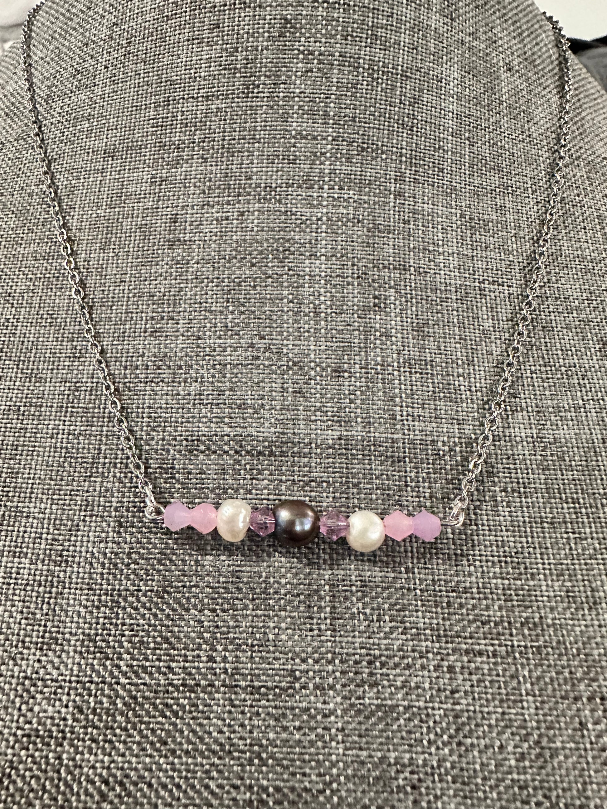 Pretty in Pink Pearl & Crystal Bar Necklace – Handmade with Real Pearls